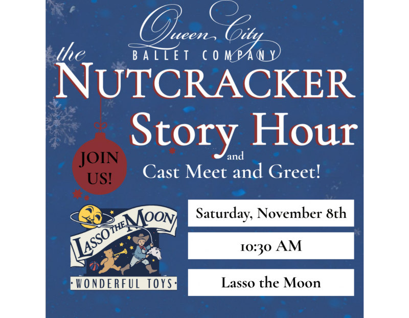 Join us Saturday, November 8th, from 10:30-11:30 AM at Lasso the Moon toy store in downtown Helena on the walking mall and meet some of our favorite characters from Queen City Ballet Company's Nutcracker! Clara, the Sugarplum Fairy, the Snow Queen, and more will be there to meet children, while a version of the Nutcracker story will be read aloud.