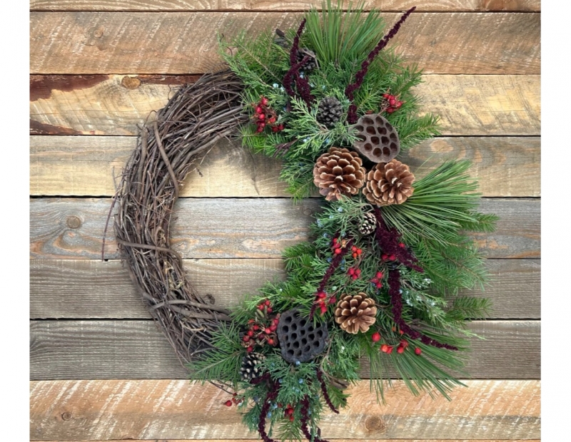Craft your own festive wreath this season using a mix of evergreen foliage, foraged materials, dried flowers, ribbon and more.
